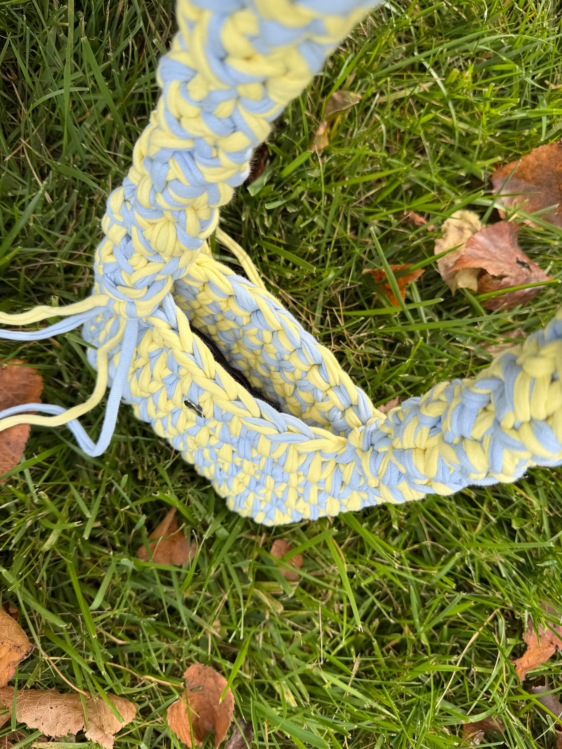 Handmade by Store Founder. This bag is durable and sturdy. Perfect for when you need to add a pop of color to any outfit. Easy access with no top closure and can fit a phone plus 3-5 small accessories.